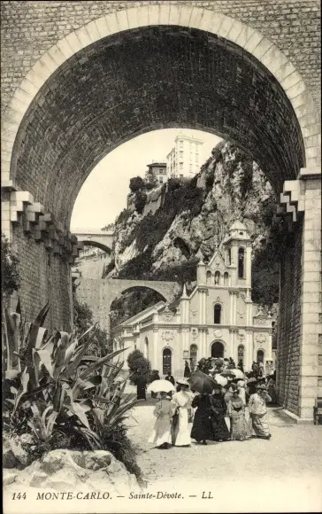 Ak Monte Carlo Monaco, Sainte Devote, Blick auf ein Tor, Passanten