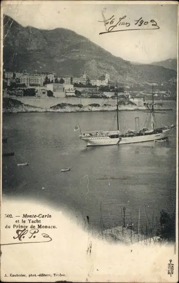 Ak Monte-Carlo Monaco, Vue Generale und die Yacht des Fürsten von Monaco
