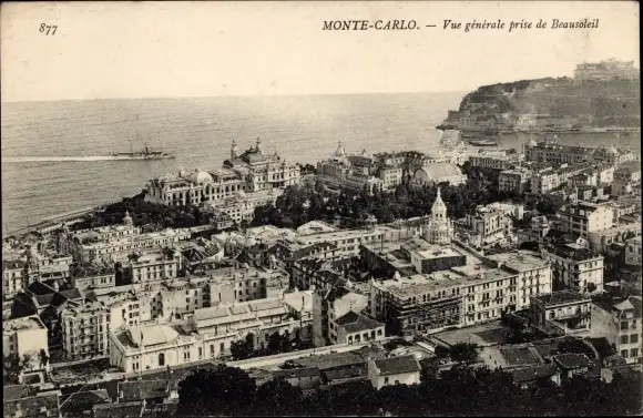 Ak Monte Carlo Monaco, Vue générale prise de Beausoleil