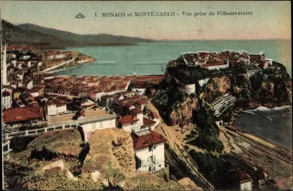 Ak Monte Carlo Monaco, Vue prise de l'Observatoire
