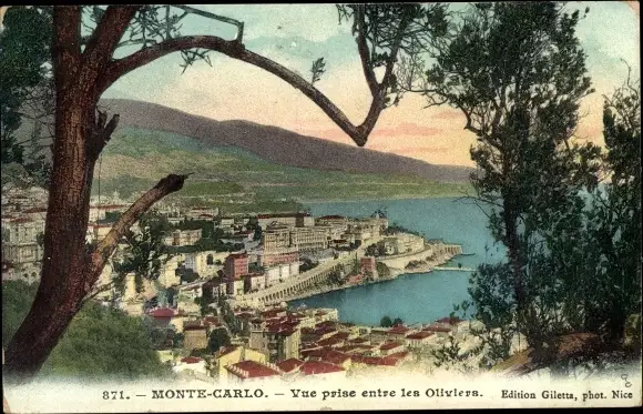 Ak Monte Carlo Monaco, Vue prise entre les Oliviers