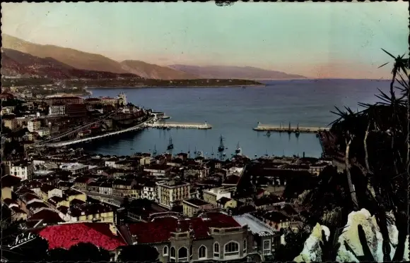 Ak Monte Carlo Monaco, Vue sur Monte Carlo et le Cap Martin