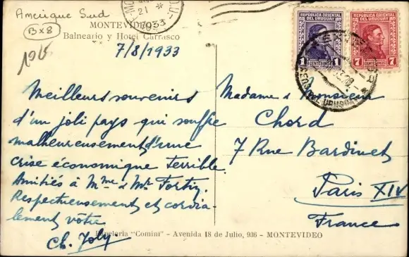 Ak Montevideo Uruguay, Balneario y Hotel Carrasco