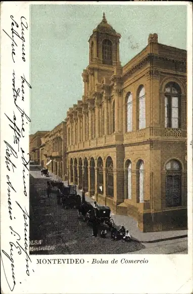 Ak Montevideo Uruguay, Bolsa de Comercio, Gebäude, Straße mit Wagen