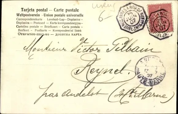 Zustand, siehe Scan, gelaufen, 1907 - ca 14 cm X 9 cm
