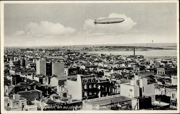 Ak Montevideo Uruguay, Luftschiff LZ 127 Graf Zeppelin über der Stadt
