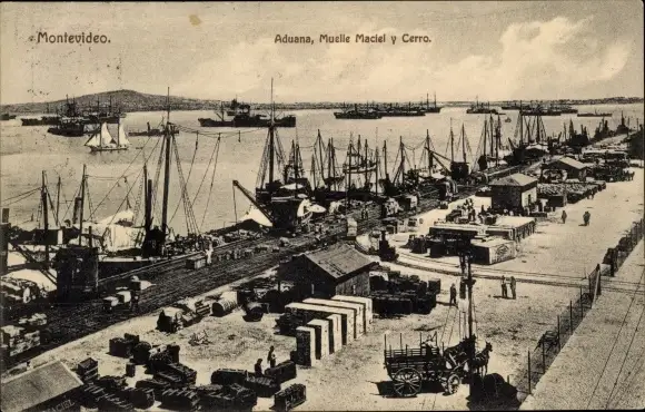 Ak Montevideo Uruguay, Zoll, Maciel Dock und Cerro