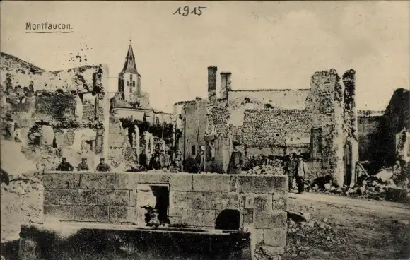 Ak Montfaucon Doubs, Zerstörte Häuser