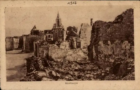 Ak Montfaucon Doubs, Zerstörte Häuser