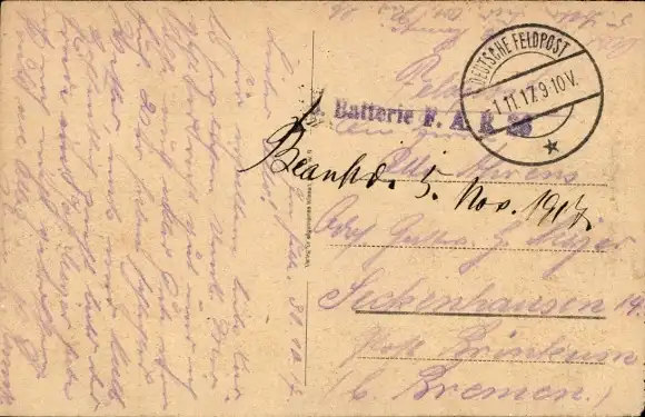 Zustand, siehe Scan, gelaufen, 1917 - ca 14 cm X 9 cm