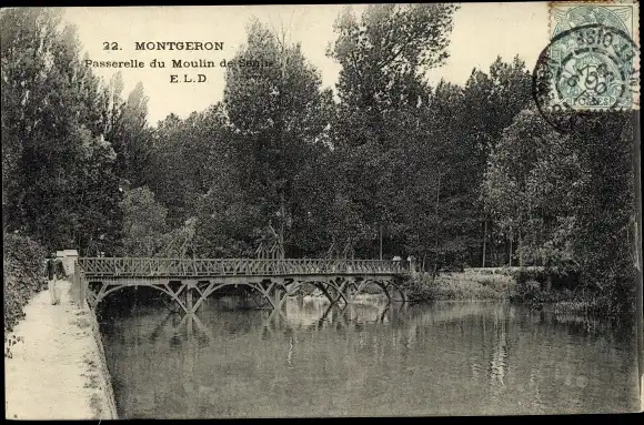 Ak Montgeron Essonne, Passerelle du Moulin de Senlis