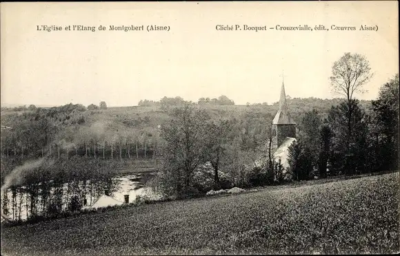 Ak Montgobert Aisne, L'Eglise et l'Etang