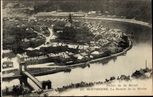 Ak Monthermé Ardennes, Schleife der Meuse, Ortsansicht