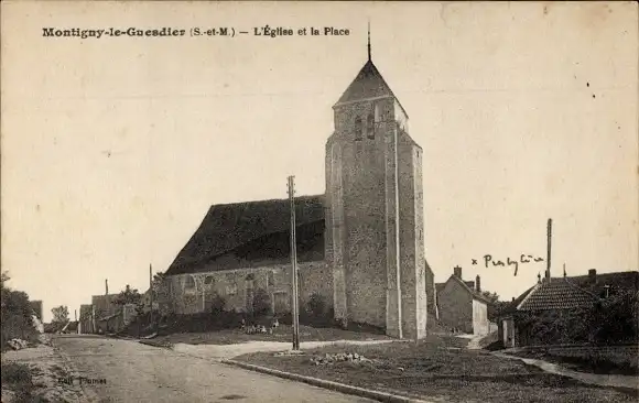 Ak Montigny le Guesdier Seine et Marne, Kirche, Place