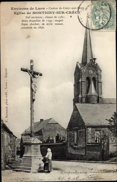 Ak Montigny-sur-Crécy Aisne, Kirche