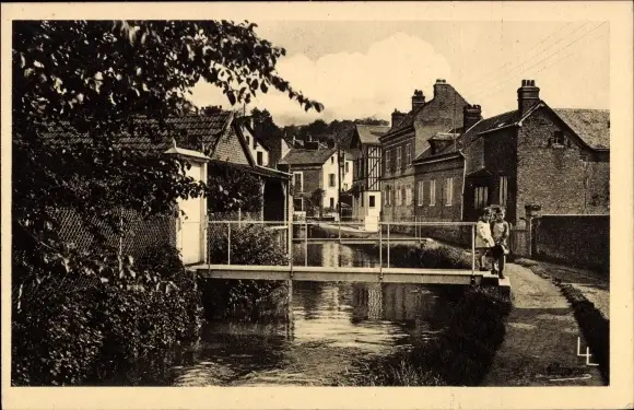 Ak Montivilliers Seine Maritime, Le bords de la Lezarde, Kinder vor Steg