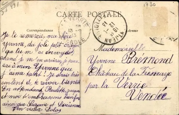gelaufen 1913, Eckknick links oben, Briefmarke entfernt, sonst guter Zustand