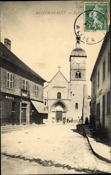 Ak Montmarault Allier, Eglise, Commerce de Modes, Commerce J. Albert