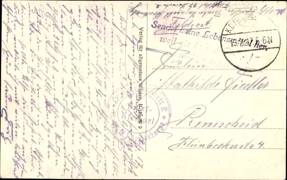 Zustand, siehe Scan, gelaufen, 1917 - ca 14 cm X 9 cm