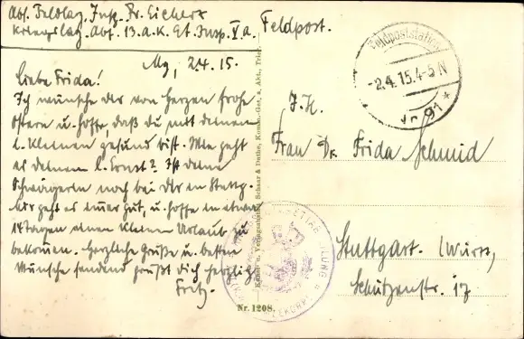 Zustand, siehe Scan, gelaufen, 1915 - ca 14 cm X 9 cm