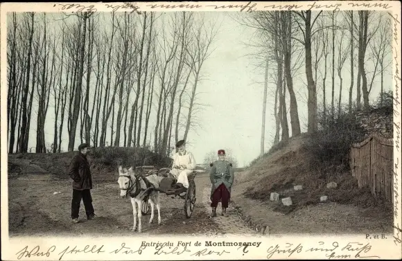 Ak Montmorency Aube, Eingang zur Festung, Eselkutsche