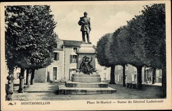 Ak Montmorillon Vienne, Place Saint Martial, Statue du General Ladmirault
