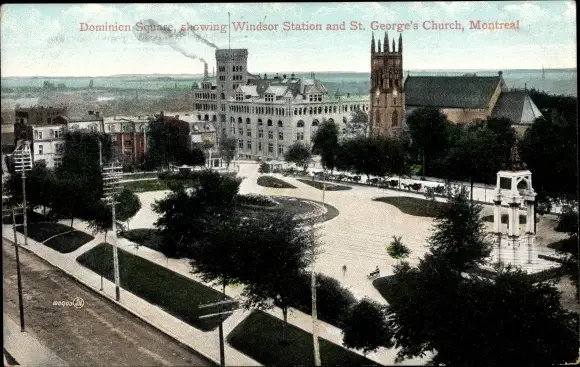 Ak Montreal Québec Kanada, Dominion Square, showing Windsor Station and St. Georges Church