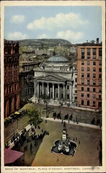 Ak Montreal Quebec Kanada, Maisonneuve Monument, Bank of Montreal, Place d'Armes