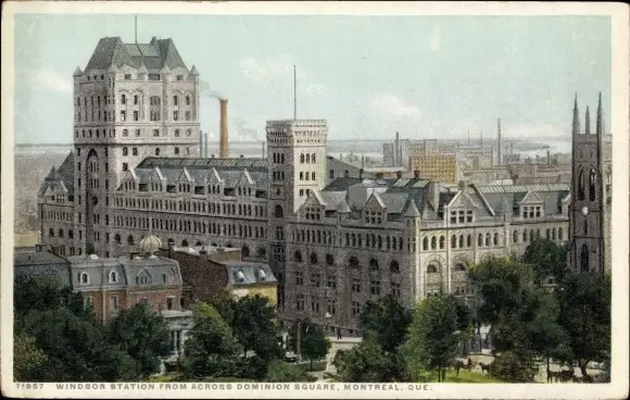 Ak Montreal Quebec Kanada, Windsor Station vom Across Dominion Square