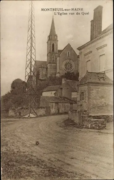 Ak Montreuil sur Maine Maine-et-Loire, L'Eglise vue du Quai
