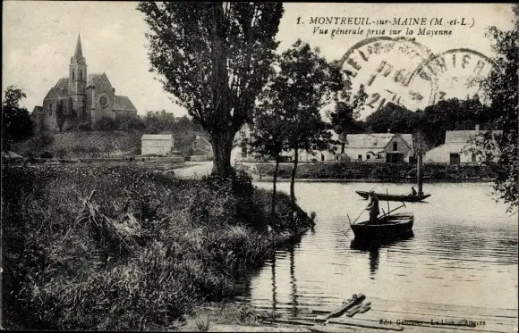 Ak Montreuil sur Maine Maine-et-Loire, Vue generale prise sur la Mayenne