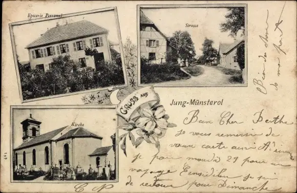 Ak Montreux Jeune Jungmünsterol Elsass Haut Rhin, Kirche, Straße, Epicerie Personal