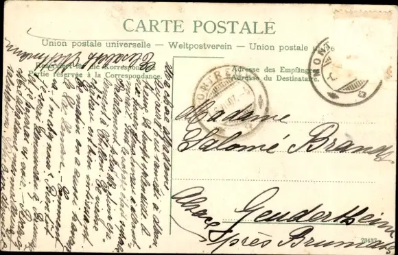 Zustand, siehe Scan, gelaufen, 1907 - ca 14 cm X 9 cm