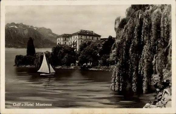 Ak Montreux Kanton Waadt Schweiz, Golf-Hotel, Segelboot