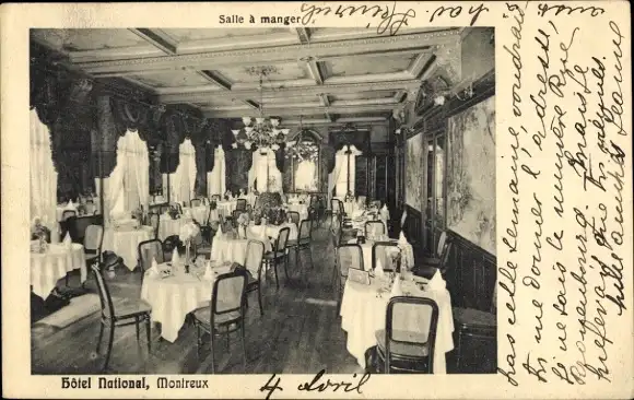 Ak Montreux Kanton Waadt Schweiz, Hotel National, Speisesaal