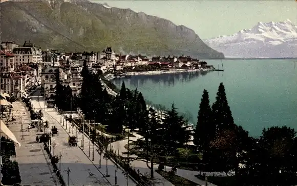 Ak Montreux Kanton Waadt Schweiz, Palace-Hotel in Montreux, Dent du Midi
