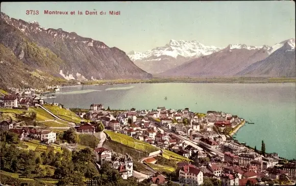 Ak Montreux Kanton Waadt Schweiz, Panorama et la Dents du Midi