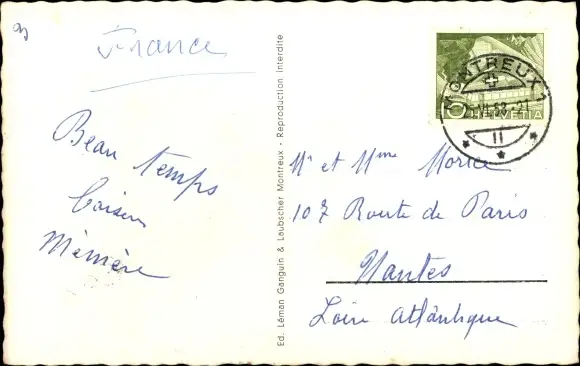 Zustand, siehe Scan, gelaufen, 1953 - ca 14 cm X 9 cm