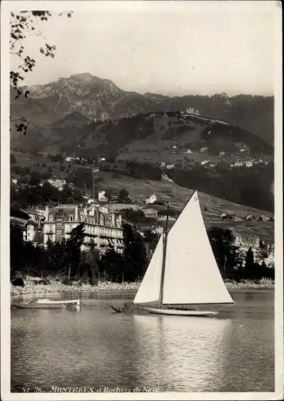 Ak Montreux Kanton Waadt, Segelpartie, Ort, Berge