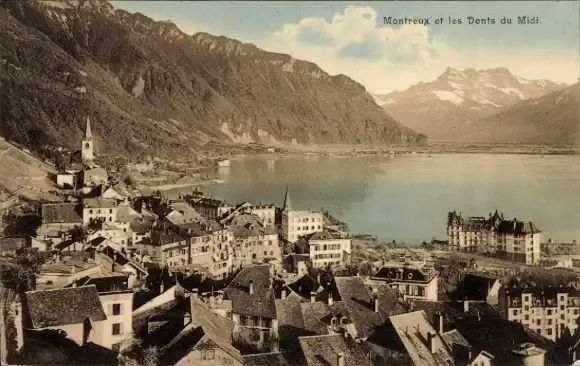 Ak Montreux Kt. Waadt, Blick auf die Stadt und die Dents du Midi