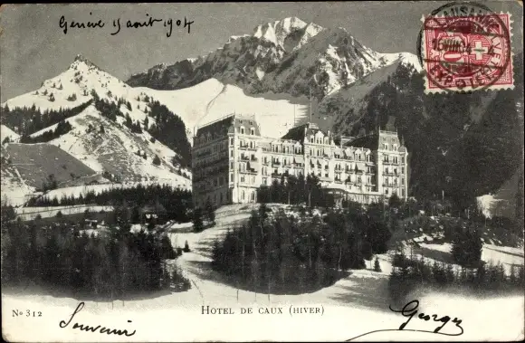 Ak Montreux Kt. Waadt Schweiz, Hôtel de Caux en Hiver, Winter