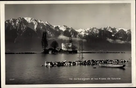 Ak Montreux Kt. Waadt Schweiz, Ile de Salagnon et les Alpes de Savoie