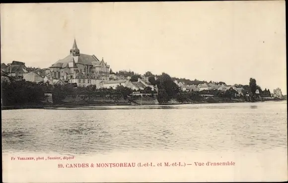 Ak Montsoreau Maine et Loire, Vue d'ensemble, Candes