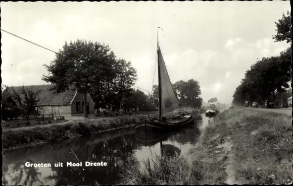 Ak Mooi Drenthe Niederlande, Flusspartie, Segelboot