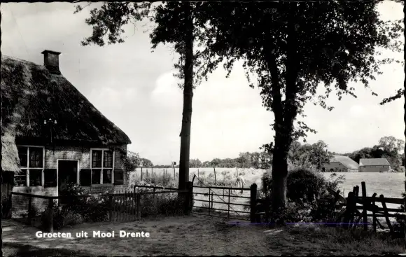 Ak Mooi Drenthe Niederlande, Reetdachhaus