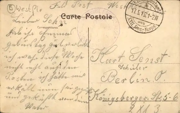 Zustand, siehe Scan, gelaufen, 1915 - ca 14 cm X 9 cm