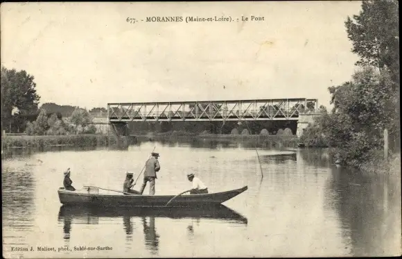 Ak Morannes Maine et Loire, Le Pont, Ruderboot, Angler