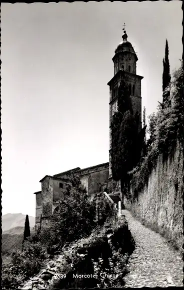 Ak Morcote Kanton Tessin, Chiesa, Partie an der Mauer