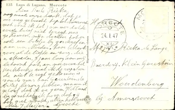Zustand, siehe Scan, gelaufen, 1947 - ca 14 cm X 9 cm