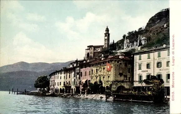 Ak Morcote Lago di Lugano Kt. Tessin, Pension, Häuser